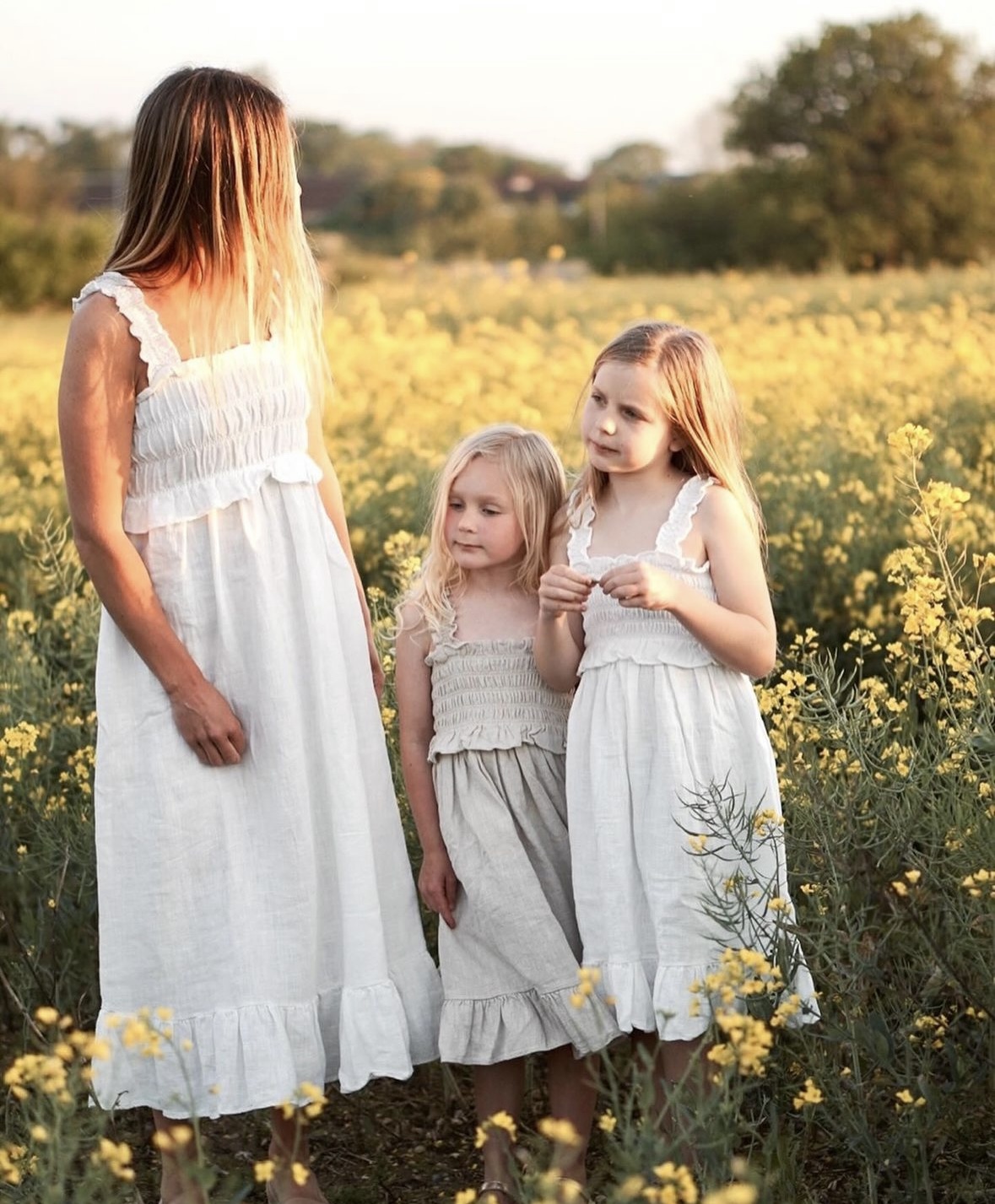 Dostępne są pasujące rampersy dla niemowląt i sukienki dla dorosłych z tej samej linii .