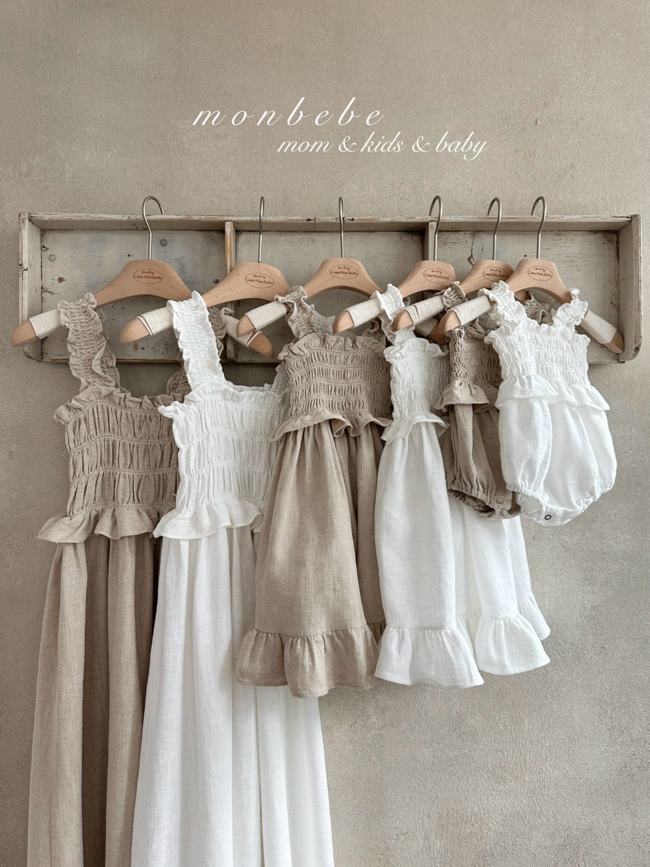 Monbebe to koreańska marka odzieżowa w klasycznym stylu, tworząca modę dla niemowląt, małych dzieci, a także pasujące kolekcje dla mam. Odkryj ich ponadczasowe projekty w stonowanych kolorach i genialnych fasonach.