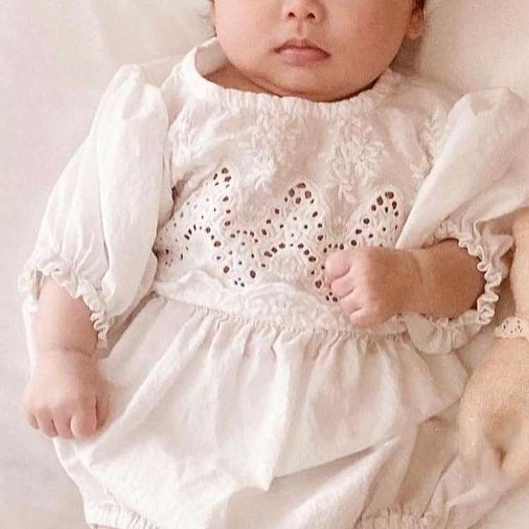 Biały Rampers Charlotte wykonany z wyjątkowo miękkiej i delikatnej bawełny- cudowny dla delikatnej skóry dziecka.