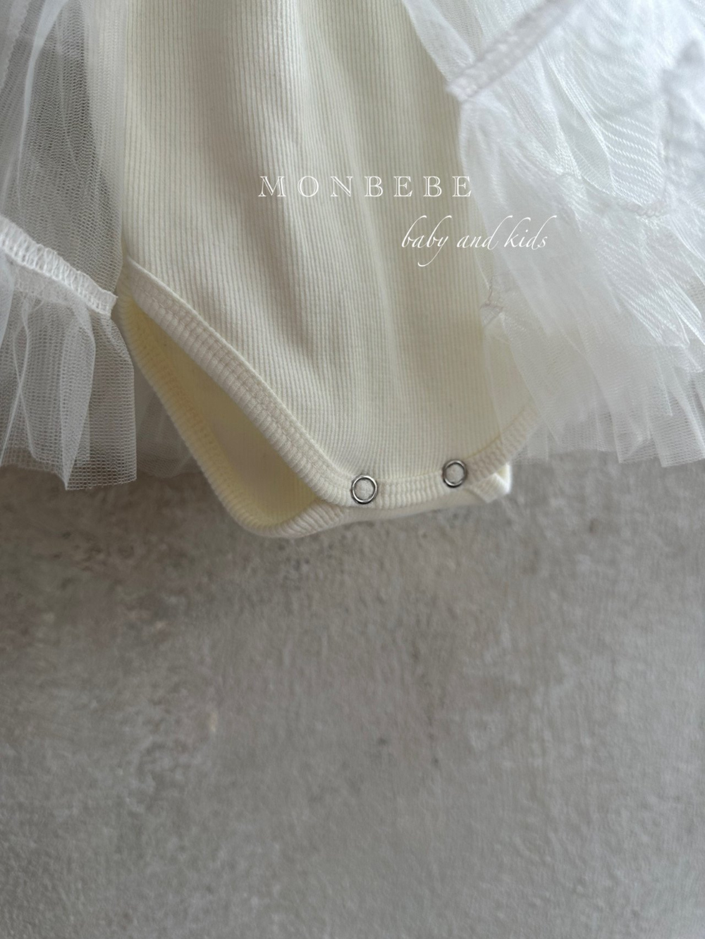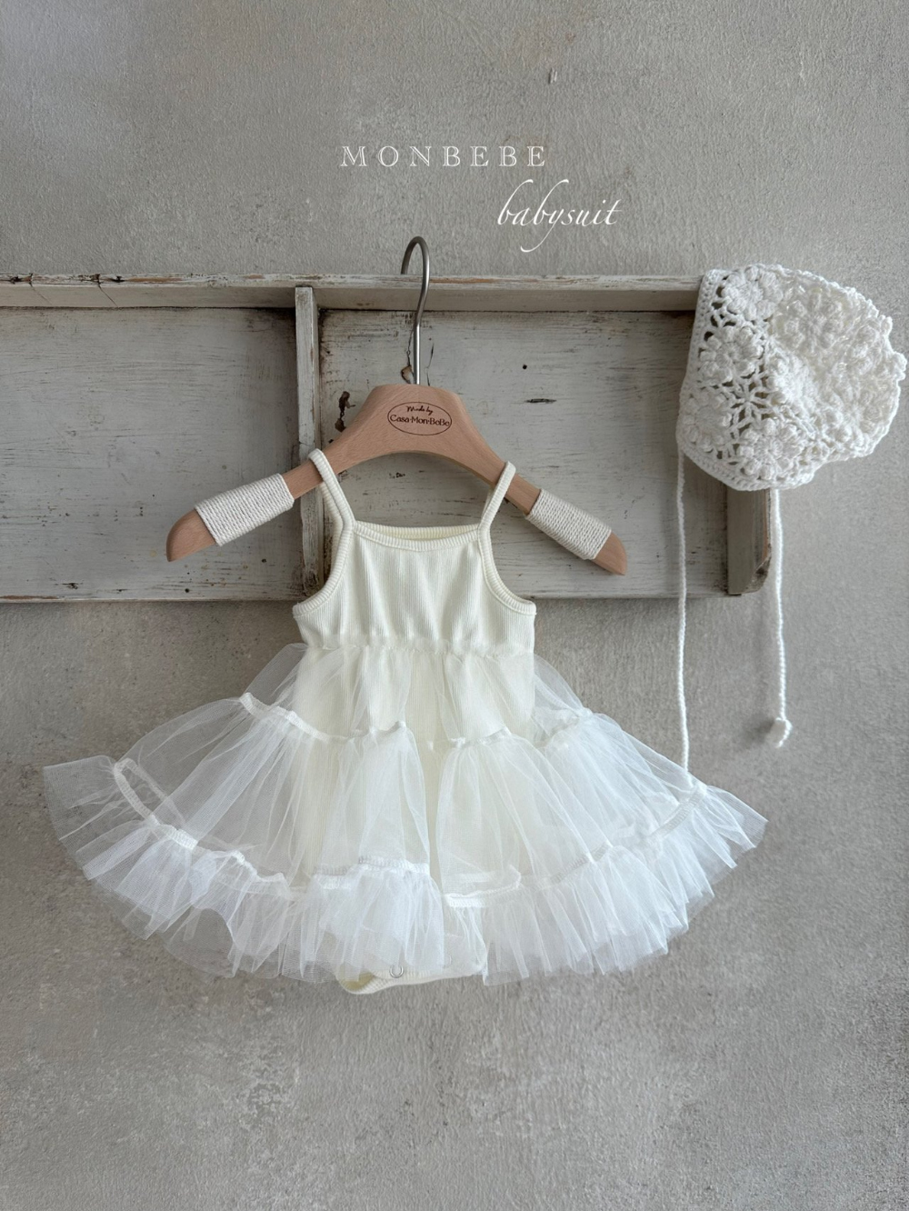 Kremowy romper/ rampers z tiulu na chrzciny, roczek od Monbebe 3-24 miesiąceKremowy romper/ rampers z tiulu na chrzciny, roczek od Monbebe 3-24 miesiące