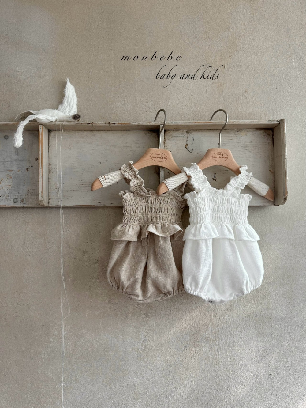 Lniany rampers dla niemowlaka w kolorze białym 62-92 cm, 100% len/ ETTE od MonbebeLniany rampers dla niemowlaka w kolorze białym 62-92 cm, 100% len/ ETTE od Monbebe
