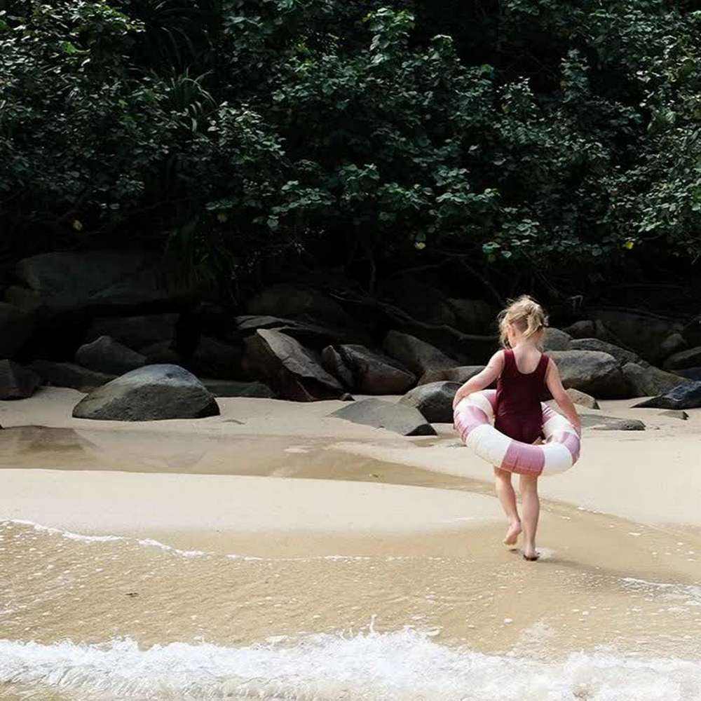 Ręcznie malowane, kremowo – różowe, ponadczasowe dmuchane koło do pływania o średnicy 60 cm, model Anna . Przeznaczone dla dzieci w wieku 3 lata+. Idealne do pływania nad morzem, w basenie, a także do zabawy na plaży. Każdy produkt dostarczany jest w woreczku z bawełny organicznej, który umożliwia wygodne przechowywanie, gdy nie jest używany. Wysoka jakość. Wykonane z wytrzymałego PVC o grubości 0,25 mm. Wolne od BPA i ftalanów. Warto wiedzieć: do każdego produktu dołączona jest łatka naprawcza w razie przypadkowego, niewielkiego przebicia. Produkt malowany ręcznie. W zależności od nacisku dłoni mogą wystąpić niewielkie różnice kolorystyczne pomiędzy produktami. Sprawdź także inne akcesoria do pływania poniżej.
