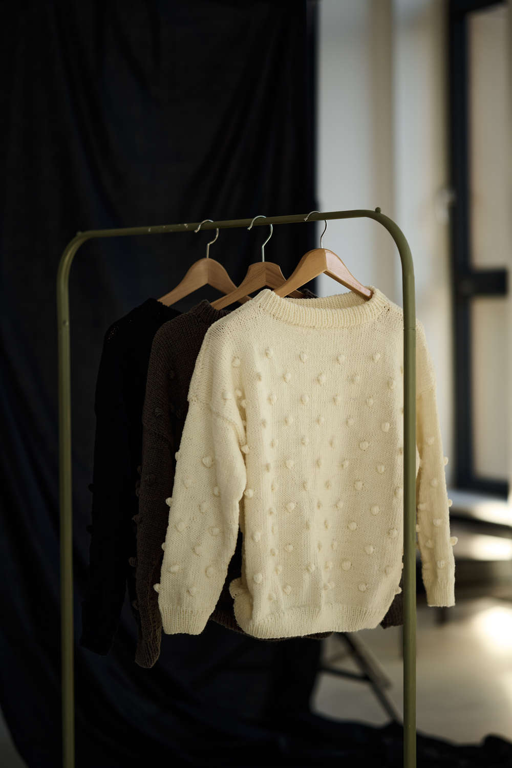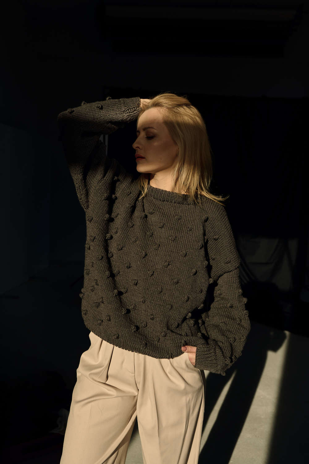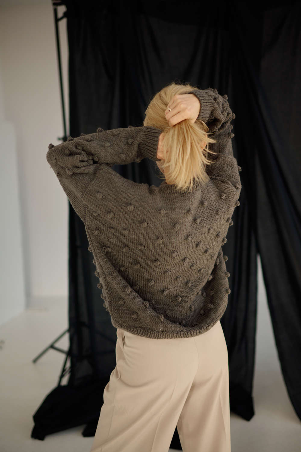 Ręcznie robiony SWETER damski z wełny merino w kolorze kremowym – Bubble CREAM