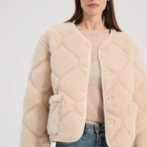 • Damska, krótka kurtka z wełny Premium 3 D beige w kolorze beżowym/ wełna 100%