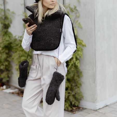 • Czarna kurtka damska oversize Teddy z wełny merino 100%/ Black